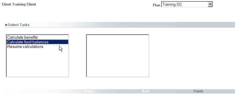 Using the arrows provided, move the Calculate fund balances task from the Available Tasks list to the Selected Tasks list.
