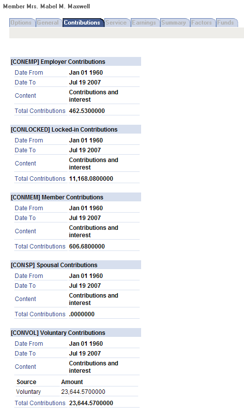 Select the Factors tab to display the Factors used to calculate the member's benefit options.